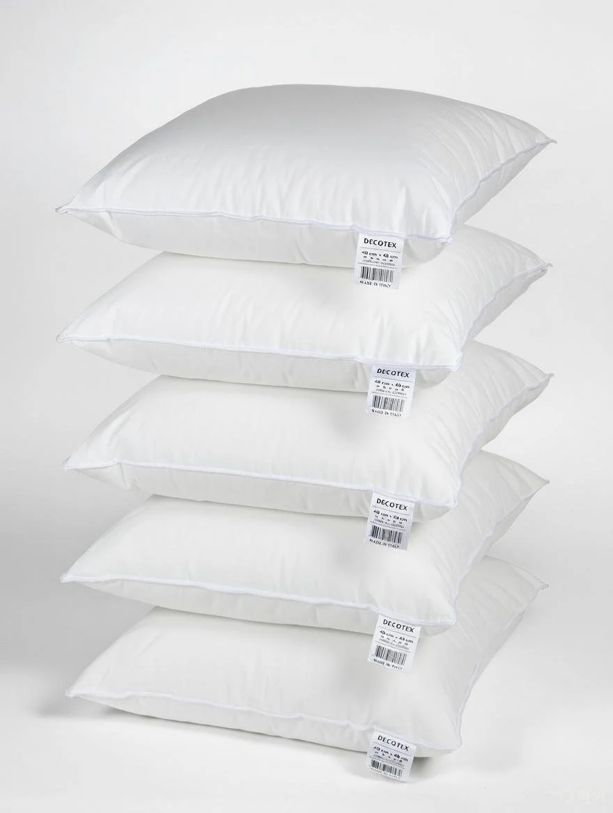 I nostri cuscini utilizzano una fodera 100% in propilene resistente e traspirante, con imbottitura 100% in poliestere vergine siliconato cavo e spiralato. Questo garantisce un'imbottitura soffice, elastica e ipoallergenica, perfetta per un comfort duraturo.